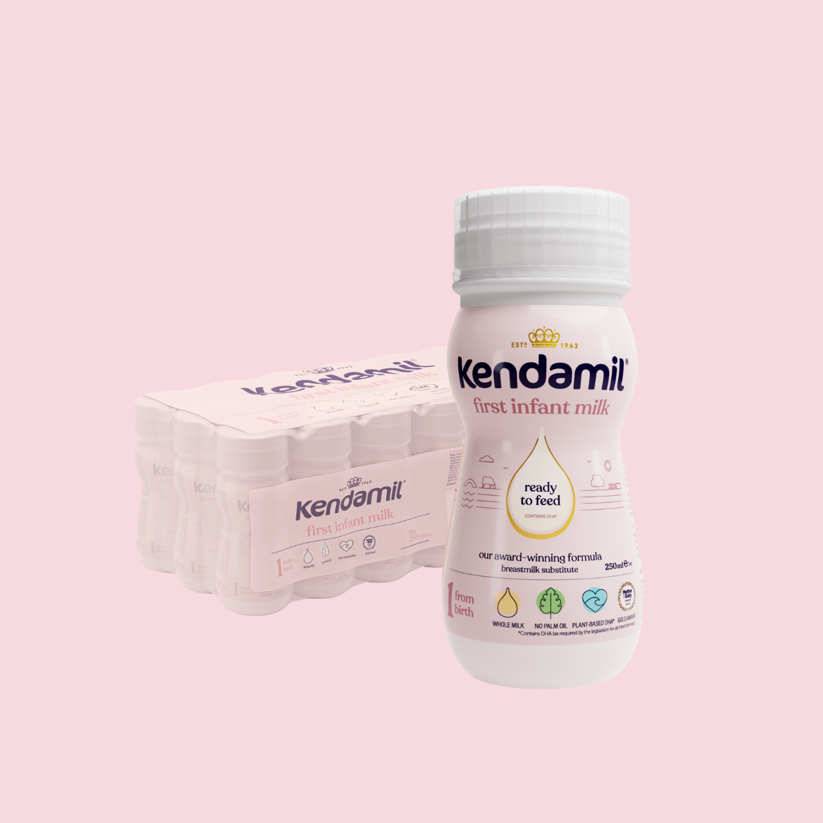 Le lait infantile Kendamil Ready to Feed First Milk convient dès la naissance.