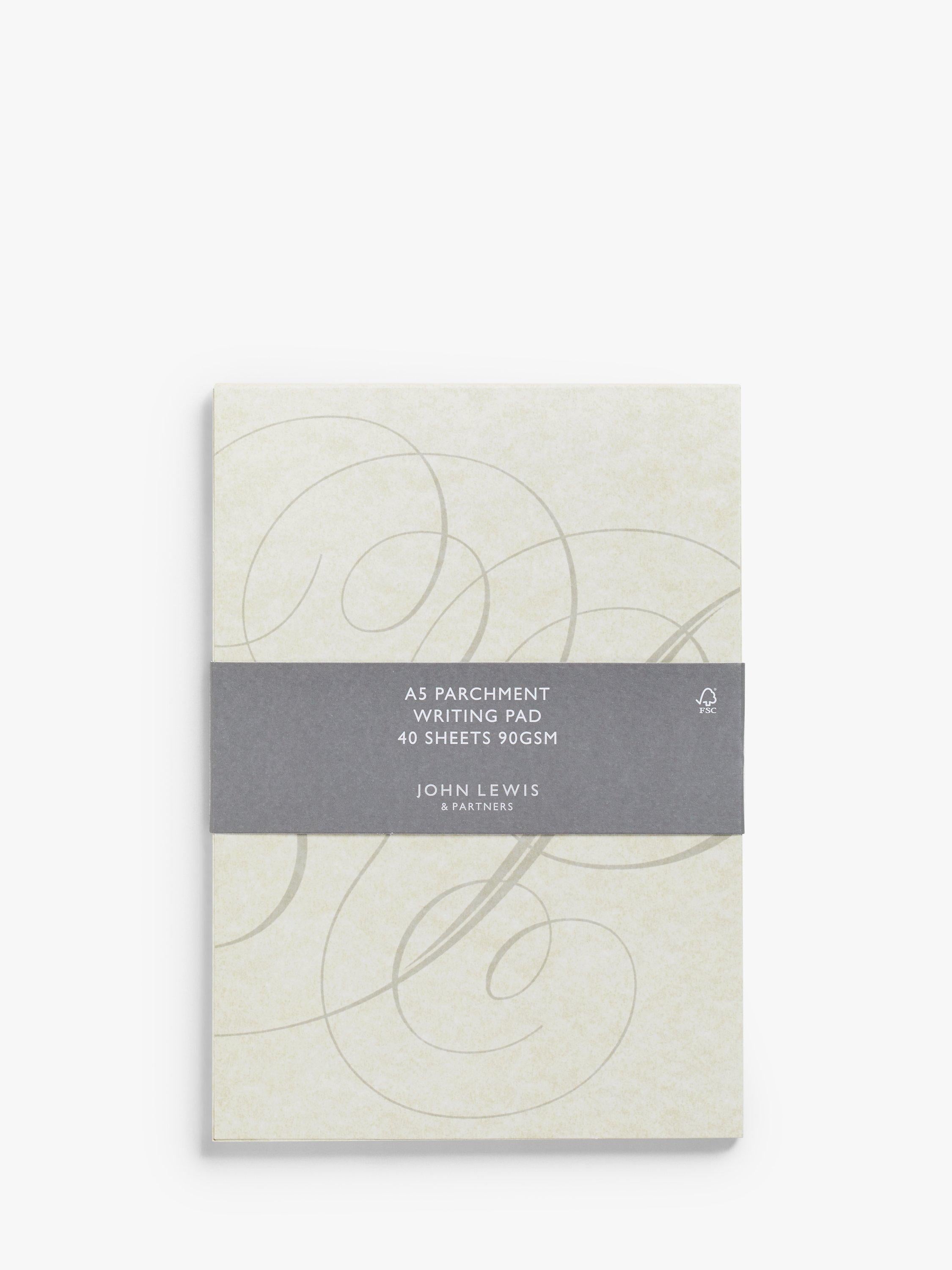 This John Lewis A5 Parchment Writing Pad supplies exactly forty individual sheets of substantial 90GSM writing material for all important correspondence needs you may have. The high-quality parchment surface ensures excellent feedback when using fountain pens or fine liners perfectly. Enjoy this classic stationery staple for elegant letter writing today.
