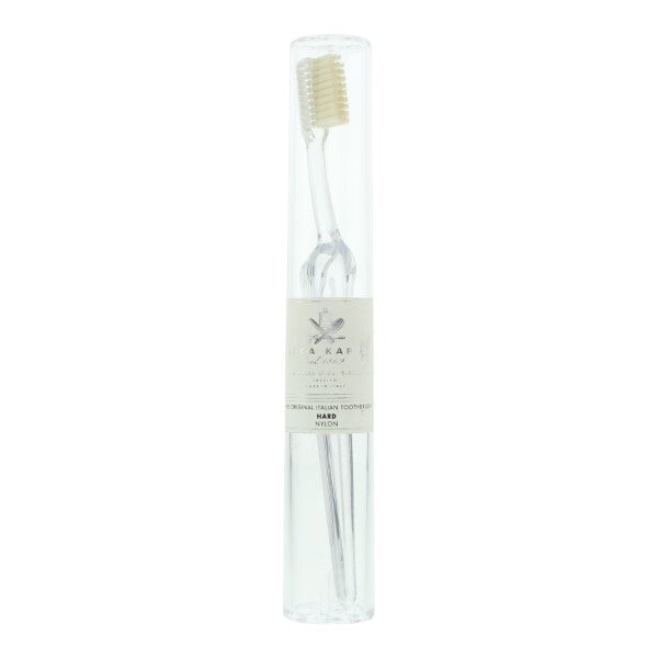 Pour une hygiène dentaire quotidienne, la brosse à dents Lympio bleu océan d'Acca Kappa est dotée de poils en nylon dur et constitue un accessoire élégant pour une bonne hygiène bucco-dentaire au quotidien.