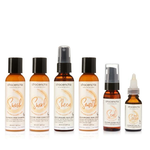 The Afrocenchix Travel Set offers award-winning products in convenient miniature sizes ideal for gym trips or when you are away from home. This collection lets you experience the full range of quality products without committing to full sizes first. Enjoy easy hair care on the go with this thoughtfully curated set.