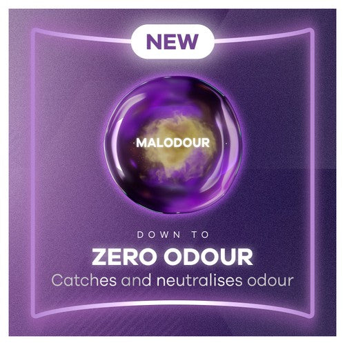 • Features effective Zero Odour technology which neutralises odours for real confidence.