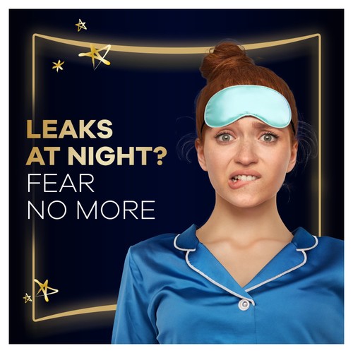 Achieve undisturbed sleep with Always Ultra Secure Night (Size 4) pads offering up to 10 hours of reliable protection. These sanitary towels feature an absorbent top layer with a gentle feel, designed to help prevent leaks during the night.