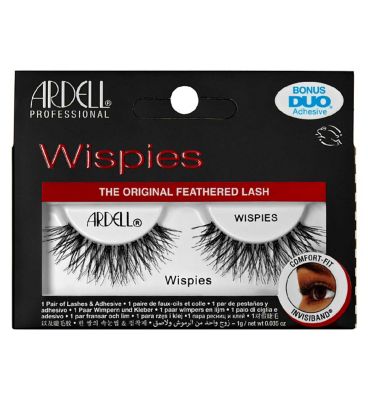 Ardell Wispies offer a full and fluttery look, enhanced by an elongated centre designed to beautifully open the eyes. These popular lashes feature an invisible, lightweight band for comfortable wear throughout the day. Each pair is meticulously crafted by hand to ensure high quality and a consistent finish.