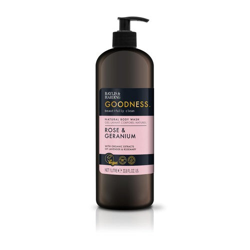 Enjoy a moment of Goodness with this generous 1L Rose & Geranium body wash, formulated for the entire family to enjoy its relaxing benefits. Take sanctuary in the shower using this calming fragrance, which blends floral notes with beneficial organic extracts. This soothing formula helps unwind your senses while effectively cleansing your skin during your daily cleansing routine.