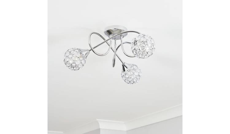 BHS Orchid Glass Flush to Ceiling Light - Silver