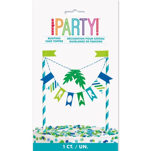 Read MoreYou’ll practically hear your cake roaring thanks to our Blue and Green Dinosaur Birthday Cake Banner! This classic cake bunting features a prehistoric twist – perfect for a dinosaur birthday party. With two blue striped straws holding a flag banner reading “ROAR,” it will awesome on top of your birthday cake or other celebratory dessert. Find more ways to take your party back in time by shopping the rest of our dinosaur themed party supplies.