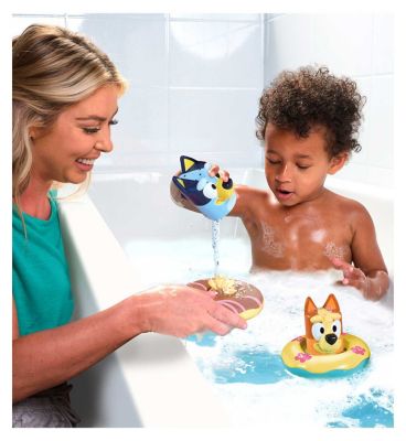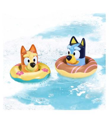 These Bluey Bath Floats bring fun to bath time or paddling pool use for Bluey and Bingo fans. Each float is designed as a two-in-one toy, featuring one of the popular characters sitting securely on top of the ring. The rings feature distinct decorations, with one styled like a donut and the other adorned with flowers.