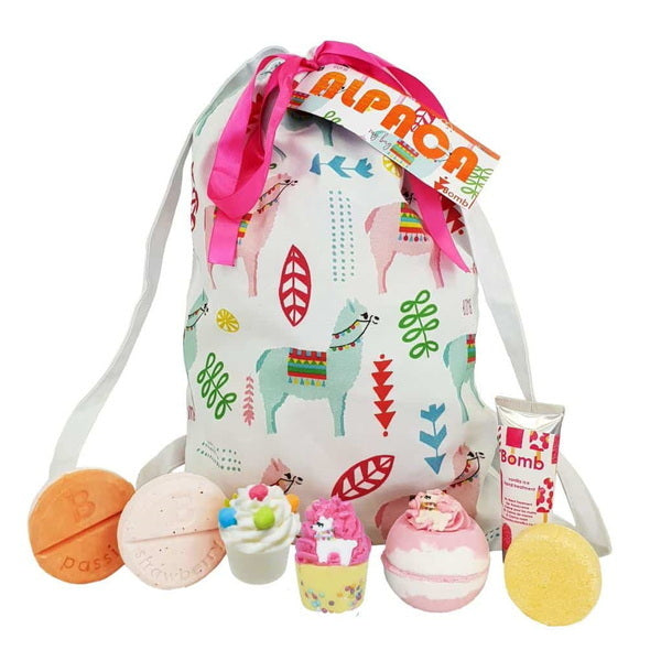 Contient 1 bombe de bain, 2 guimauves de bain, 2 mitigeurs de douche, 1 shampoing solide et 1 soin pour les mains. Ce coffret vous procurera une sensation de détente absolue. Parfum d'alpaga frais et parfum fruité. Magnifiquement emballé, fait main au Royaume-Uni. Fièrement sans cruauté. Notre collection de trousses de toilette ludiques est fabriquée en coton biologique de haute qualité, parfaite pour ranger vos bombes de bain et bien plus encore. Ces trousses de toilette conviennent à tous les âges et sont suffisamment polyvalentes pour transporter vos essentiels de bain, vos cosmétiques ou vos effets personnels. Bombe de bain No Probllama 160 g : Détendez-vous avec la bombe de bain No Probllama, infusée d'huiles essentielles apaisantes. Cette bombe de bain pétille pour révéler des senteurs relaxantes tout en adoucissant l'eau et votre peau. Le moyen idéal de se détendre après une journée chargée. Guimauve Drama Lama 50 g : Laissez la guimauve Drama Lama faire fondre votre stress avec cette guimauve de bain ultra-douce, riche en cacao et en beurre de karité. Elle crée un bain soyeux qui nourrit et hydrate, tandis que son délicieux parfum vous met de bonne humeur. Guimauve Passion Pom Pom 50 g : Infusée d'un Mélange énergisant d'huiles essentielles fruitées, ce gel douche Passion Pom Pom Mallow apporte une touche ludique et amusante à votre bain. Sa base onctueuse et beurrée hydrate votre peau, la laissant douce et éclatante. Gel douche Passion 95 g : transformez votre douche en une expérience revitalisante avec le gel douche Passion. Ce mélange fruité et vibrant mousse généreusement et offre un parfum rafraîchissant pour éveiller vos sens et vous dynamiser tout au long de la journée. Gel douche Fraise 95 g : laissez-vous envelopper par le doux parfum irrésistible des fraises mûres sous la douche. Le gel douche Fraise crée une mousse onctueuse et luxueuse qui nourrit votre peau à chaque utilisation, vous procurant une sensation de fraîcheur et de bien-être. Shampoing solide Retour aux Racines 50 g : ce shampoing solide écologique est composé d'ingrédients naturels qui nettoient et nourrissent vos cheveux en douceur. Son parfum rafraîchissant aux notes de racines et ses huiles nourrissantes laisseront vos cheveux doux, brillants et sains. Soin mains Glace à la Vanille 25 ml : offrez à vos mains le soin qu'elles méritent avec le soin mains Glace à la Vanille. Enrichi en beurres végétaux et au parfum envoûtant de vanille, ce soin hydrate et adoucit intensément, laissant vos mains douces et soyeuses. Chaque produit de ce coffret a été soigneusement conçu pour sublimer votre routine de bien-être, vous laissant détendu(e), ressourcé(e) et prêt(e) à conquérir le monde avec le sourire.