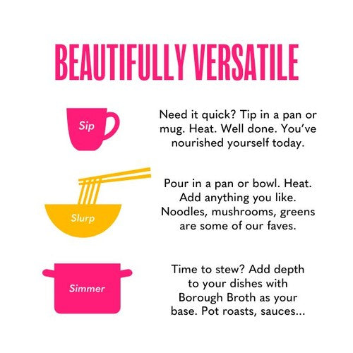 Borough Broth developed this rich Tonkotsu broth specifically for making Japanese-inspired ramen at home. This shio base is carefully cooked low and slow to achieve a deep, complex flavour profile. It simplifies creating authentic ramen, saving you preparation time without compromising taste.
