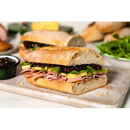 Serving suggestion: Spoon out and enjoy in a delicious pickle, cheese & ham baguette sandwich!