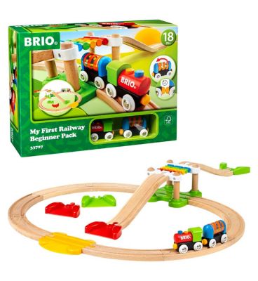 The BRIO My First Railway Beginner Pack offers a hardy, wooden train set ideal for introducing play to toddlers. This quality set is designed with bright colours to engage young minds and spark early creativity. It serves as the perfect foundational set for railway exploration.