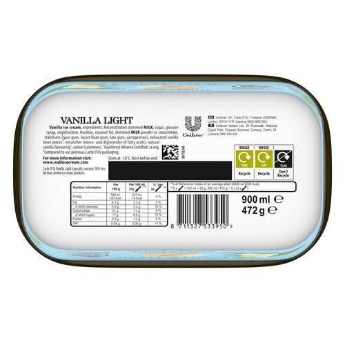 Carte Dor Madagascan Vanilla Light Ice Cream Dessert Tub
