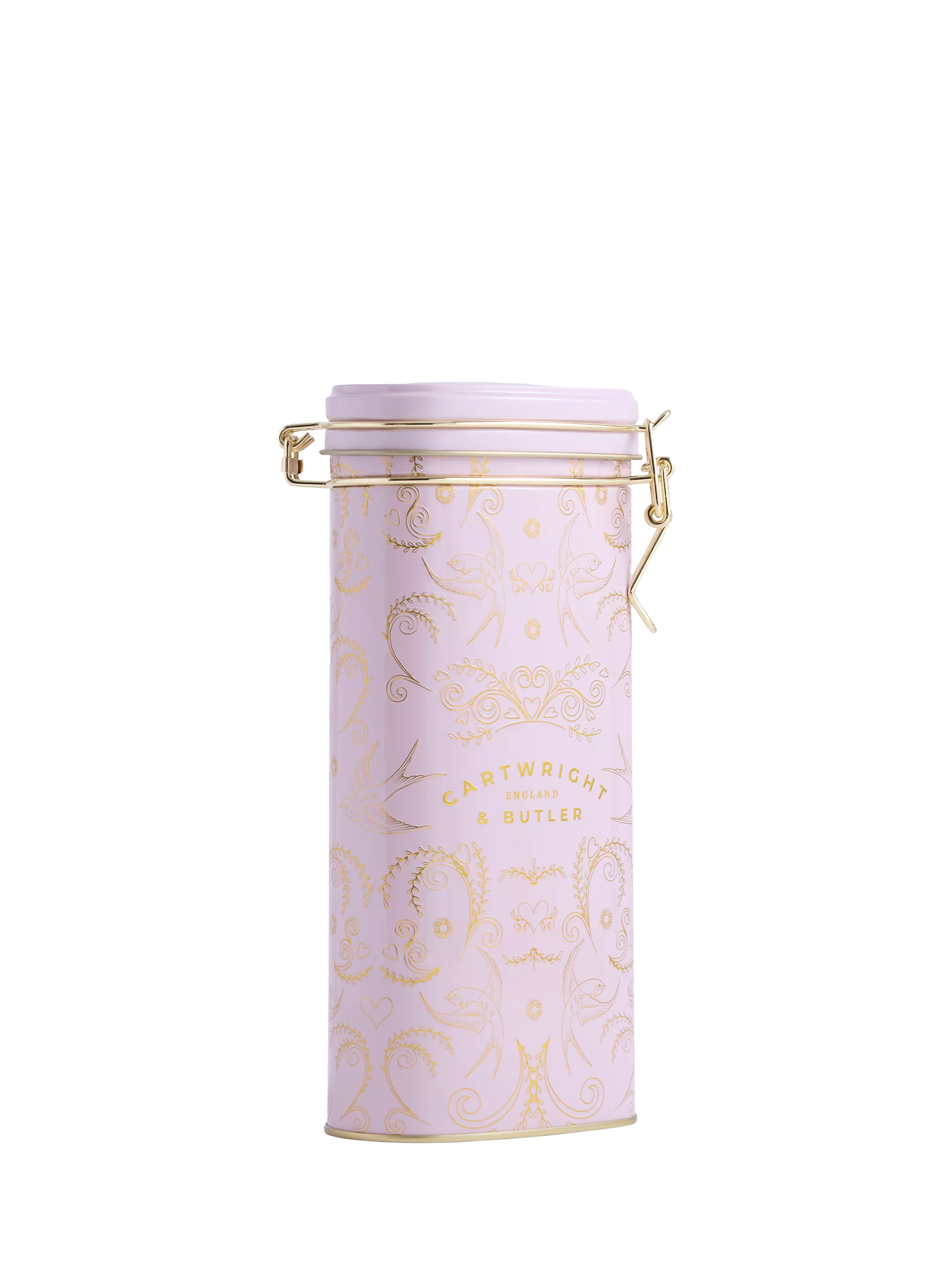 Cette boîte en métal rose poudré en forme de cœur est ornée de cœurs, d'hirondelles et de fleurs dorés en relief, ce qui en fait le cadeau idéal pour exprimer votre amour. Unique, intemporelle et fidèle au style raffiné de Cartwright & Butler.