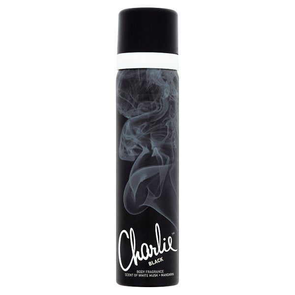 Product Information charlie black body fragrance with a scent of white musk mandarin the charlie collection take an unexpected journey the kind you dont even have to pack for dont conform be a creator charlie try layering charlie black charlie enchant