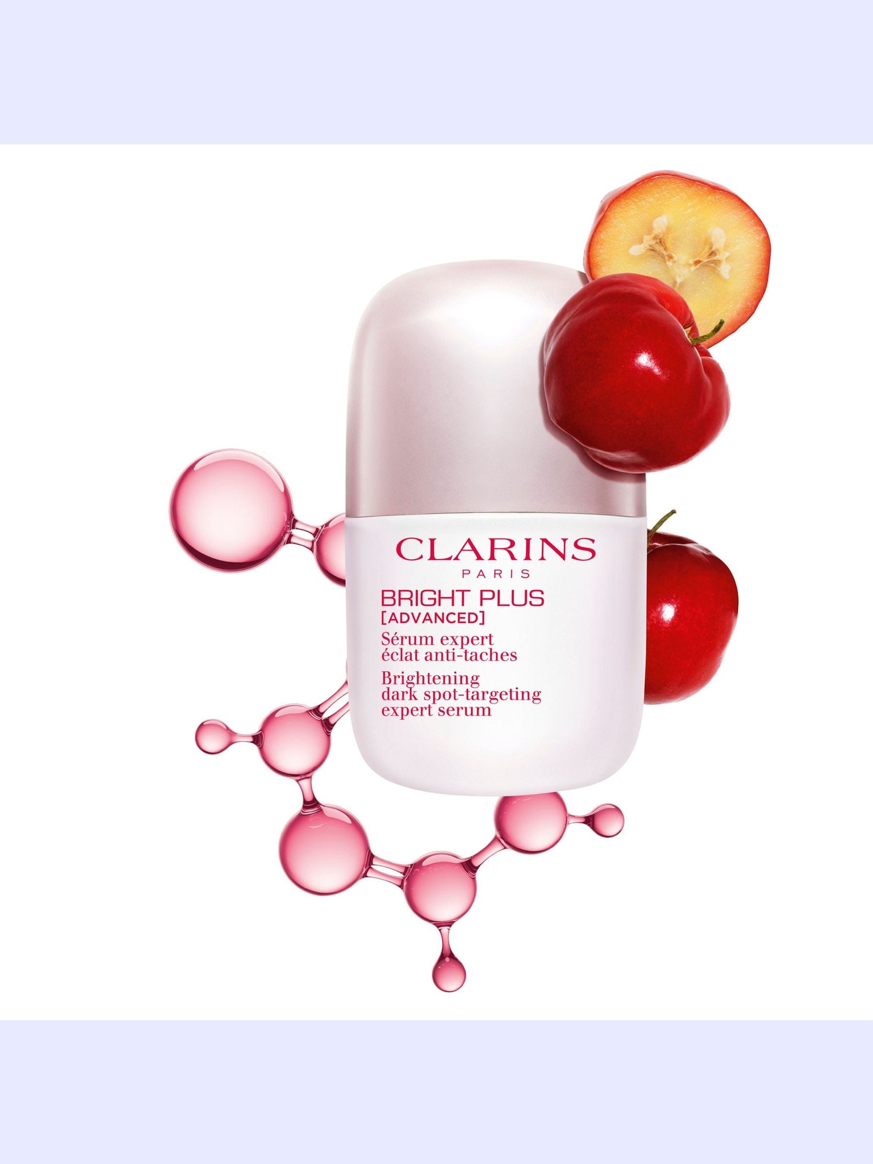 Reach a new level of bright with Bright Plus [ADVANCED], Clarins’ new brightening dark spot-targeting expert serum. This serum delivers 5 key actions on brightness in an advanced formula powered by Clarins’ latest innovation : [EVENNESS BOOSTING] TECHNOLOGY. Formulated with purple tea extract, this breakthrough technology is proven to help even skin tone. Acerola seed extract helps prevent skin yellowness while potent plant extracts combined with vitamin C derivative and niacinamide to target dullness, help reduce the appearance of dark spots and blemish marks, restoring radiance. Skin is visibly more even and brighter overall. Suitable for all skin types, even the most delicate. How to: Cleanse, tone and apply Bright Plus [Advanced] Serum. For added brightness, you can also use the Bright Plus [Advanced] Serum-in-lotion prior to Serum use. Exfoliate once or twice a week also to remove dead surface cells.