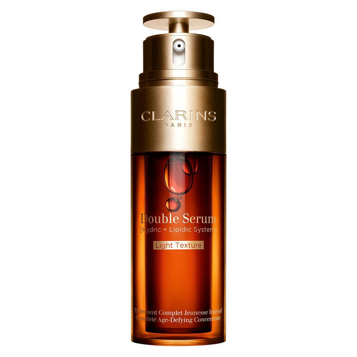 L’emblématique Double Sérum se décline désormais dans une nouvelle texture légère et imperceptible, tout en conservant son efficacité prouvée sur les signes de l’âge. Développée par la Recherche Clarins, sa formule double unique associe les 21 puissants extraits végétaux de la formule originale, qui contribuent à stimuler les 5 fonctions vitales de la peau – régénération, nutrition, oxygénation, hydratation et protection – et à agir sur les signes du vieillissement. Sa double texture – huile éphémère et gel fluide – offre une sensation de légèreté inédite, 50 % plus légère*, pénètre instantanément et laisse un fini imperceptible. Les flacons emboîtables renferment les deux formules dans un format ingénieux, alliant technologie et éco-conception, privilégiant les matériaux responsables et limitant les déchets. Double sérum, en version plus légère, idéal pour les peaux mixtes à grasses, ou pour celles et ceux qui préfèrent une texture plus légère. *Test d'analyse sensorielle comparative vs. Double Serum, réalisé par 12 experts sensoriels