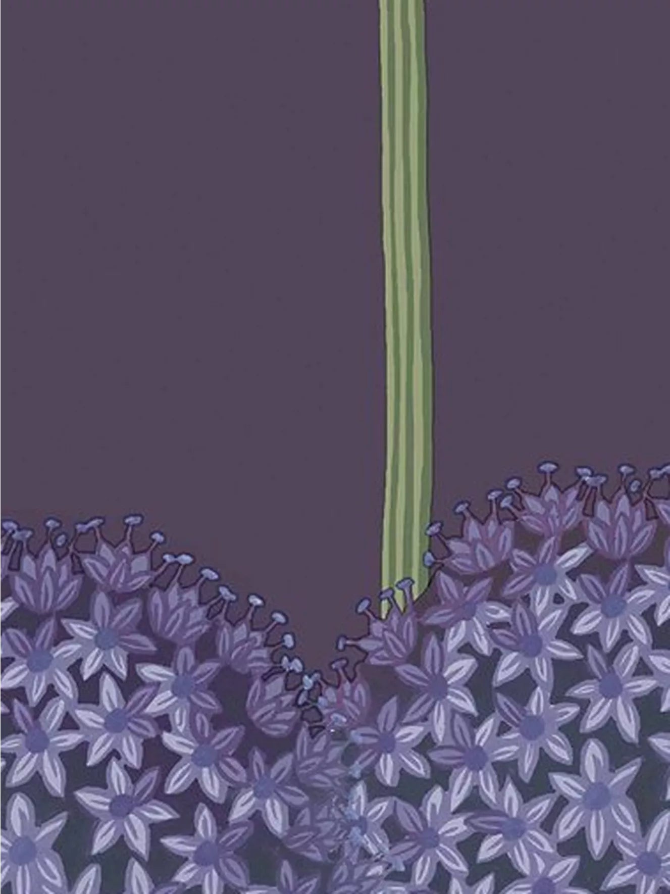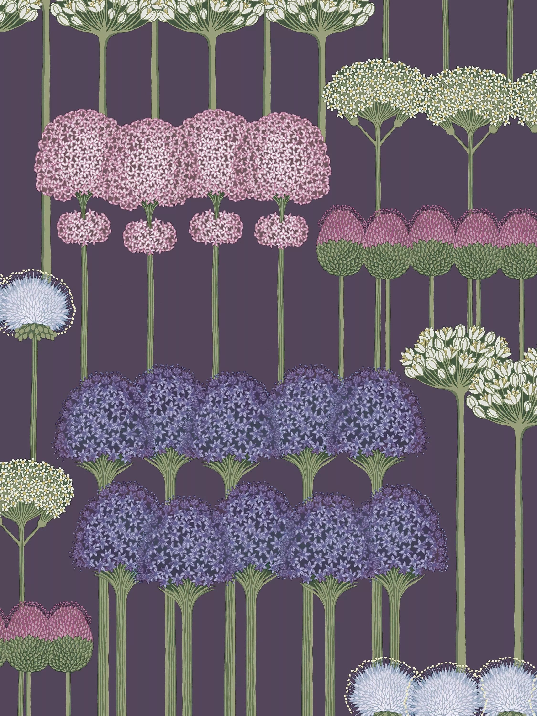 L'Allium, une interprétation contemporaine et géométrique du motif floral traditionnel, transforme cette plante herbacée vivace remarquable en un audacieux motif répétitif de grappes fleuries. Avec leur explosion de couleurs et de textures, les sphères florales de l'Allium, associées à leurs longues tiges sans feuilles, forment une rayure florale unique.