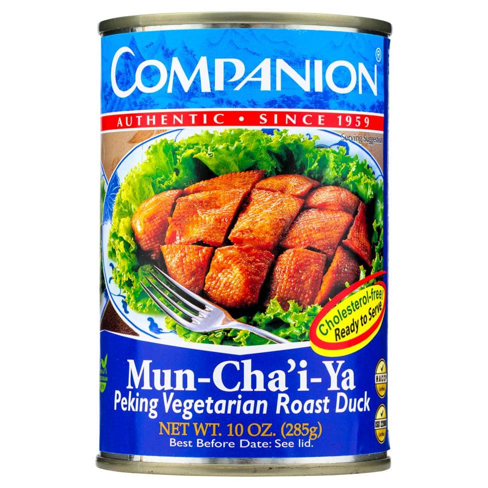 Le Companion Mun Cha'i Ya, aussi appelé Canard laqué végétarien de Pékin, est un plat végétarien qui reproduit les saveurs et la texture du canard laqué traditionnel de Pékin, sans utiliser de viande. Il est généralement préparé à base de gluten de blé (seitan) assaisonné, mariné et rôti pour obtenir une croûte croustillante et une chair tendre rappelant celle du canard. Ce plat est réputé pour ses saveurs riches et aromatiques, souvent rehaussées d'un mélange de sauce soja, de sauce hoisin et de cinq-épices chinoises. Le Companion Mun Cha'i Ya est un choix populaire parmi les végétariens et ceux qui souhaitent découvrir des alternatives sans viande tout en savourant les saveurs authentiques de la cuisine chinoise.