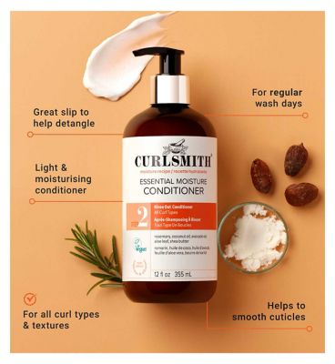 Cet après-shampoing Curlsmith Essential Moisture (355 ml) hydrate intensément tous les types de boucles. Il apporte une douceur exceptionnelle et facilite le démêlage. Sa formule légère respecte la couleur et lisse les cuticules. Résultat : des boucles sans frisottis, nourries et faciles à coiffer au quotidien. Convient à un usage quotidien.