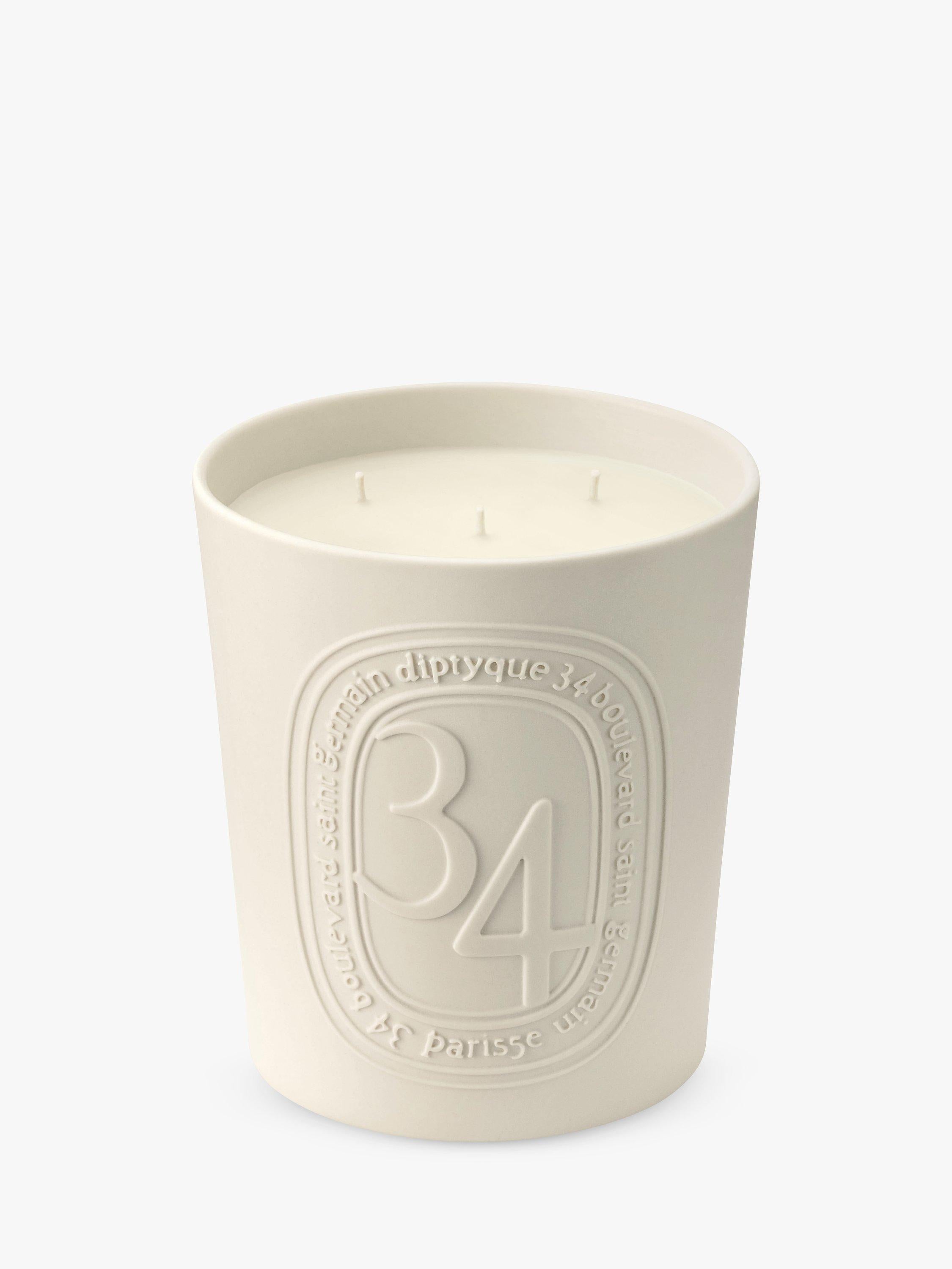 The Diptyque 34 Boulevard Saint Germain Scented Candle 600G offers luxurious home fragrance. This exceptional piece features the brand's distinctive signature scent profile, combining fresh moss and crushed blackcurrant leaves notes expertly. Encased in white biscuit porcelain, this large candle enriches your living space wonderfully.