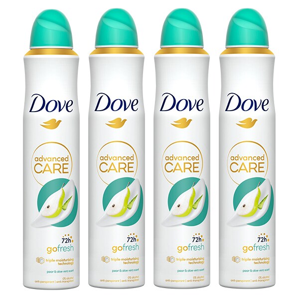 includes dove antiperspirant deodorant spray pear aloe vera 200ml x4