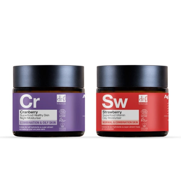 Ce coffret de soins vegan nouvelle génération, issu de notre gamme Apothecary, associe des crèmes hydratantes de jour et de nuit pour revitaliser et nourrir votre teint. Réveillez votre peau avec notre Crème de Jour rafraîchissante. Enrichie en fraise et en baies de genièvre, cette formule pénètre rapidement, laissant un parfum subtil et un éclat radieux. Gorgée de vitamines B6, C, E et K, elle élimine l'excès de sébum, hydrate intensément et équilibre votre peau pour un fini frais et lumineux. Le soir venu, offrez-vous un soin de nuit avec notre Crème de Nuit à la Cranberry. Sa formule puissante améliore le teint et la texture tout en hydratant intensément, pour une peau douce et souple. Au réveil, votre peau est plus éclatante, plus ferme, vos pores sont resserrés, et votre teint est souple et frais. Découvrez le pouvoir des ingrédients naturels et des soins vegan nouvelle génération avec ce duo dynamique.