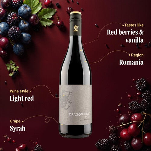 This Dragon Hills Syrah is produced in partnership with the multi-award-winning Romanian winery, Cramele Recaş. It offers a beautifully fruit-forward profile that is soft and inviting upon first tasting. This wine successfully achieves a fine balance between richness and elegance for satisfying enjoyment.