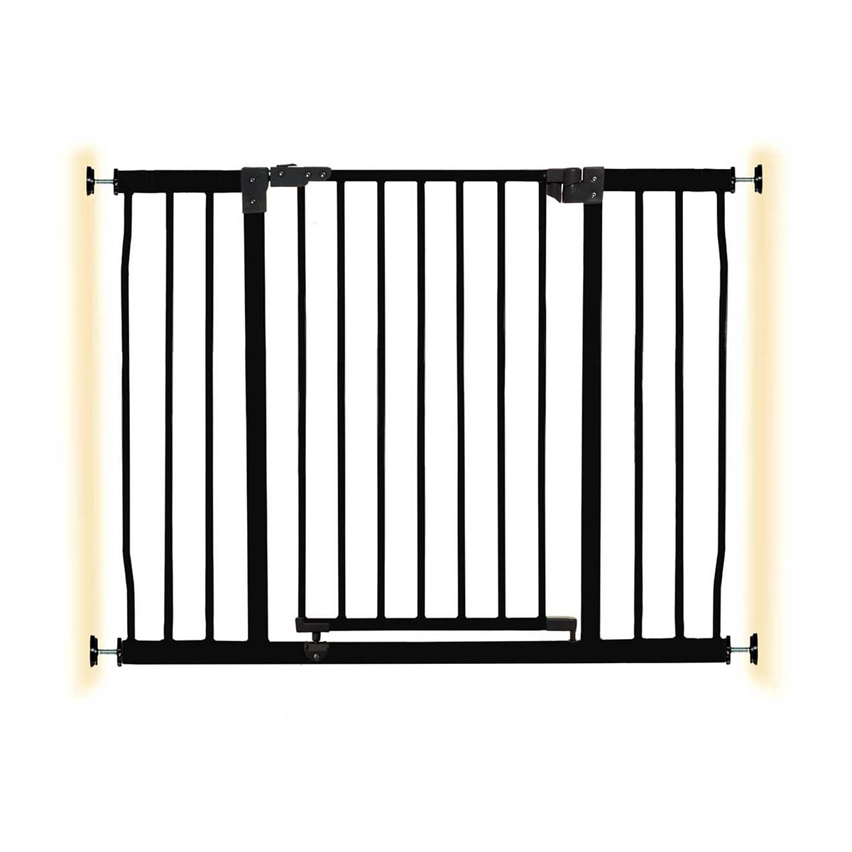 Cette barrière de sécurité extra-large à fixation par pression convient aux ouvertures de 99 à 105,5 cm. Idéale pour une utilisation dans votre cuisine, salle de bain, salon ou escalier, elle peut également être étendue grâce à des extensions optionnelles (vendues séparément).