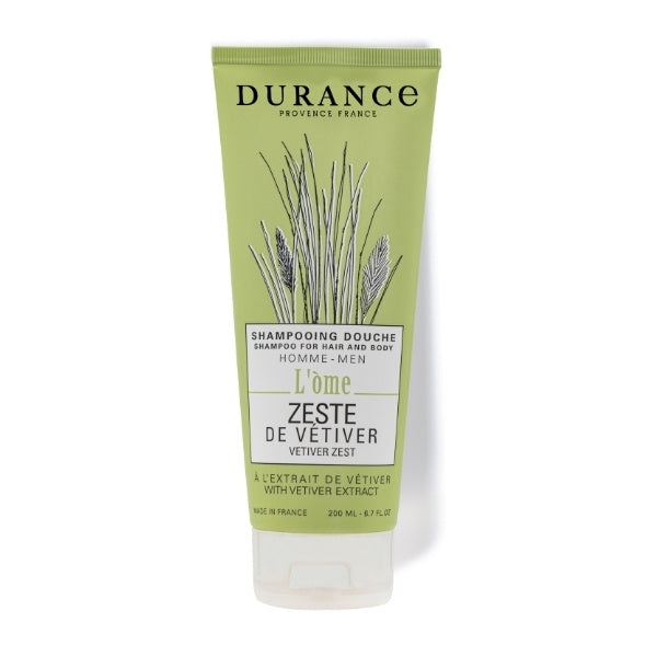 durance vetiver zest shampoo for hair body 2in1 cleansing freshness this 2in1 shampoo and body wash provides an effective yet gentle cleanse for both skin and hair infused with the invigorating scent of vetiver zest it combines fresh citrus notes with aromatic woody undertones ideal for daily use it leaves hair soft skin refreshed and a subtle longlasting fragrance fragrance notes top notes bergamot grapefruit heart notes clary sage ginger base notes vetiver amber moss key benefits versatile 2in1 formula cleanses both hair and body in one step refreshing elegant scent a balanced mix of fresh citrus and woody notes gentle effective leaves skin clean and hair soft without drying ecoconscious made with natural ingredients and crafted in provence enjoy a refreshing and effortless cleansing experience with this naturally inspired shampoo designed to bring a touch of provences elegance to your daily routine