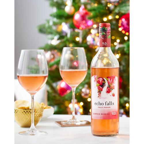 - Echo Falls is the number #1 I32Fruit Fusion Wine Brand in the UK, - 9.0% Mixed Alcohol Beverage, - Appearance: Deep pink colour, - Palate: Light, sweet strawberry and raspberry flavours, finishing with dark fruit and floral grape notes