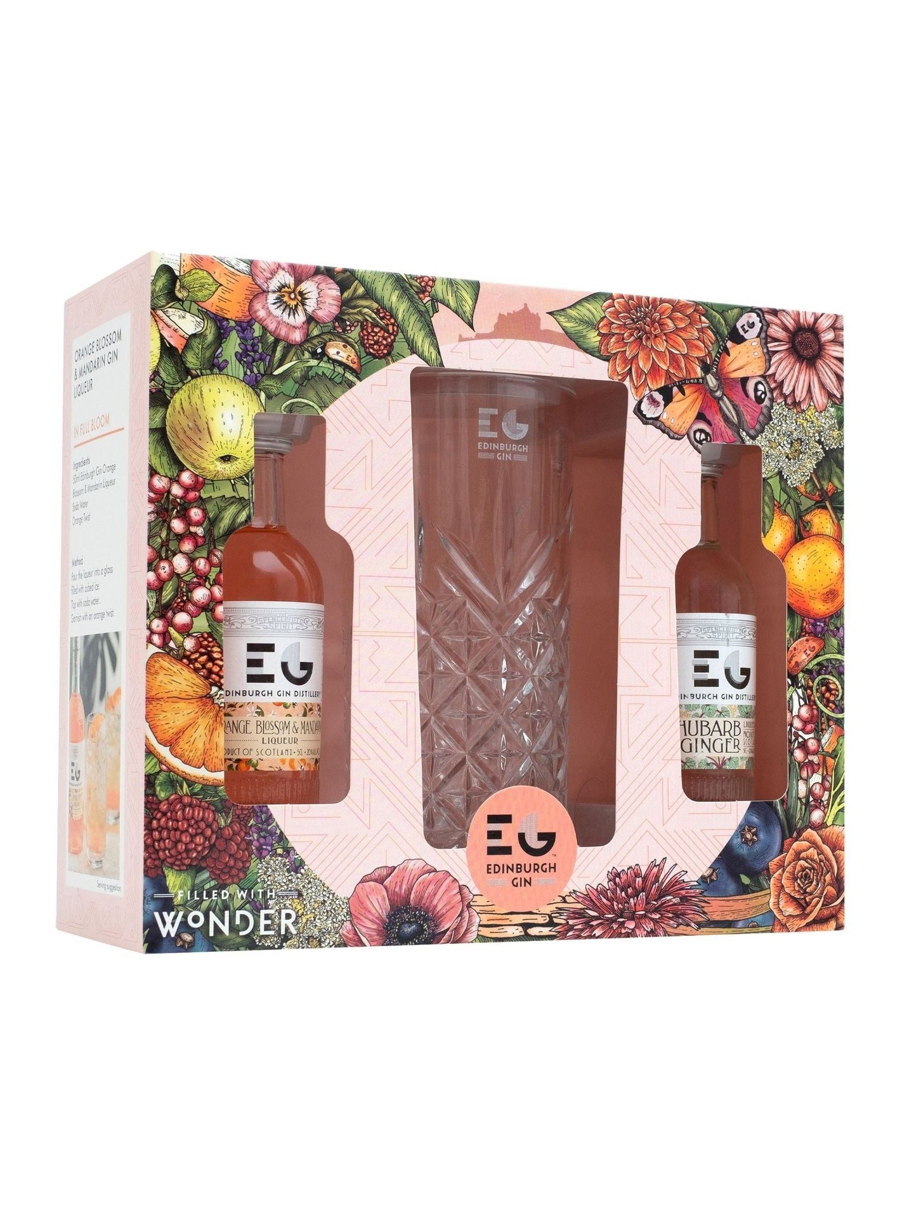 Partagez le plaisir de déguster cette liqueur intensément fruitée chez vous et servez-la avec élégance à vos proches ! 1 bouteille de gin Edinburgh à la mandarine (5 cl, 20 % vol.) et 1 bouteille de gin Edinburgh à la rhubarbe et au gingembre (5 cl, 20 % vol.). Un coffret cadeau idéal de gins aromatisés.