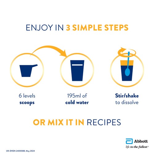 Easy to make with 6 level scoops of Ensure NutriVigor powder and approx. 195ml of cold water. Tackle the day with 1-2 servings of Ensure NutriVigor alongside a healthy and balanced diet.