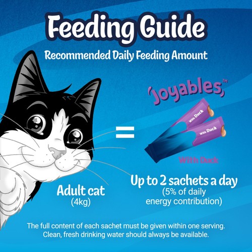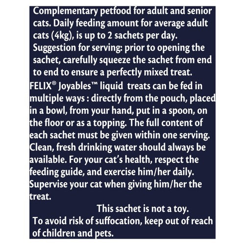 FELIX Joyables Duck are creamy liquid treats providing an enjoyable way to interact with your cat. These treats feature a thick, smooth texture, encouraging longer moments of closeness between you and your pet. Offer this delightful flavour for a rewarding treat experience.