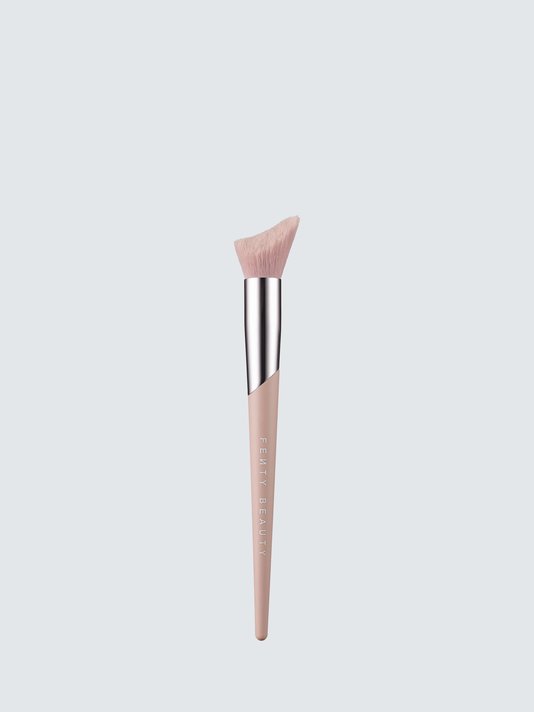 The Cheek-Hugging Highlight Brush 120 embraces curves like no other. This game-changing Fenty Beauty highlight brush features has curves on both sides that 'hug' more than just your cheeks — like your brow bone, cupid’s bow, the bridge of your nose and even your collarbone — for an effortlessly killer glow.