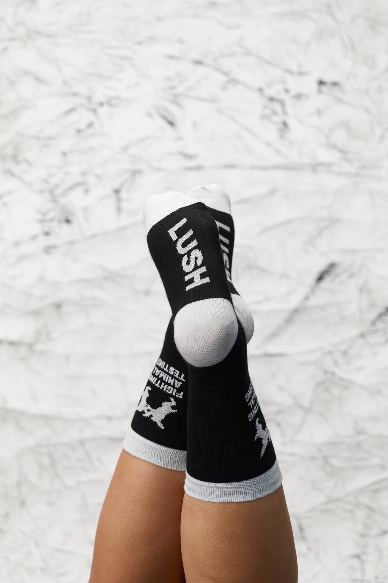 Affirmez votre engagement et luttez contre les tests sur les animaux. Disponibles en deux tailles, ces chaussettes sont fabriquées au Royaume-Uni en édition limitée avec un fort pourcentage de coton biologique.