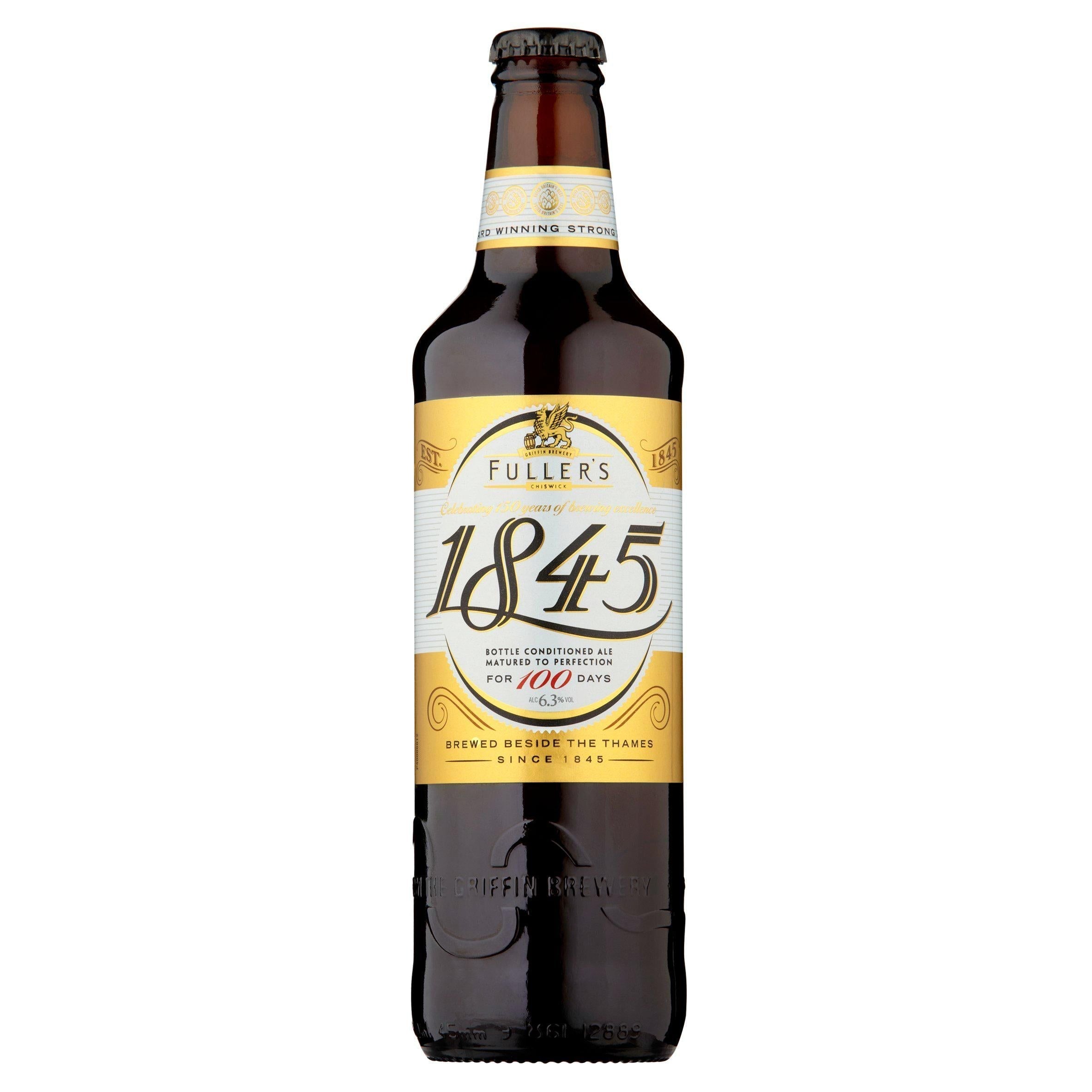 Laissez-vous tenter par un morceau d'histoire brassicole britannique avec la Fuller's 1845 6,3% Bottle Conditioned Ale, une bière forte d'exception, affinée pendant 100 jours. Cette bière primée, inspirée des recettes originales de Fuller's, offre une expérience unique et savoureuse, idéale pour les amateurs de bières ale du monde entier.