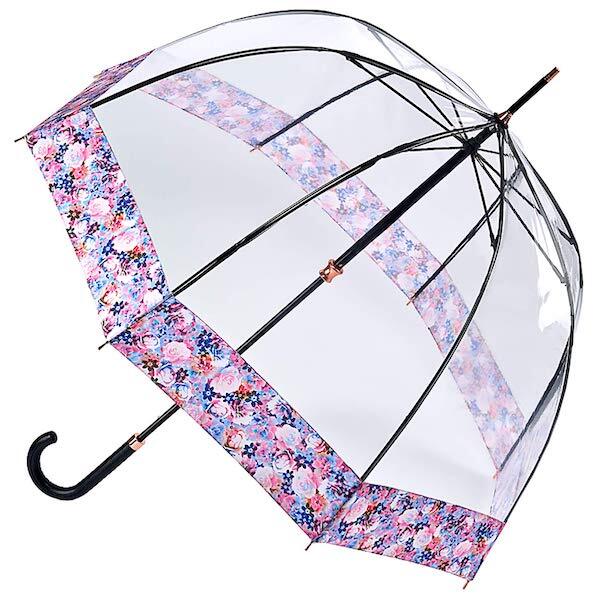 Informations produit : Parapluie iconique en forme de dôme offrant une protection complète de la tête et des épaules. Toile transparente en PVC de haute qualité pour une visibilité optimale lors de la marche. Bordure imprimée en tissu. Mécanisme d'ouverture et de fermeture breveté pour une utilisation simplifiée. Armature en fibre de verre ultra-résistante à 8 baleines. Longueur des baleines : 63 cm. Embouts et virole métalliques assortis. Longueur fermé : 96 cm. Envergure : 88 cm. Poids : environ 480 g.