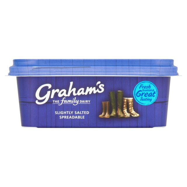 Désormais, savourez le beurre Graham's directement sorti du réfrigérateur. En ajoutant de l'huile végétale à notre recette, nous avons créé un beurre tartinable au goût toujours aussi délicieux. La famille Graham's a toujours fabriqué du beurre de façon traditionnelle, riche en ingrédients naturels. Certains d'entre nous préfèrent un beurre légèrement salé ; nous en avons donc ajouté une pointe, ni trop, ni trop peu, juste ce qu'il faut pour un goût et une saveur parfaits.