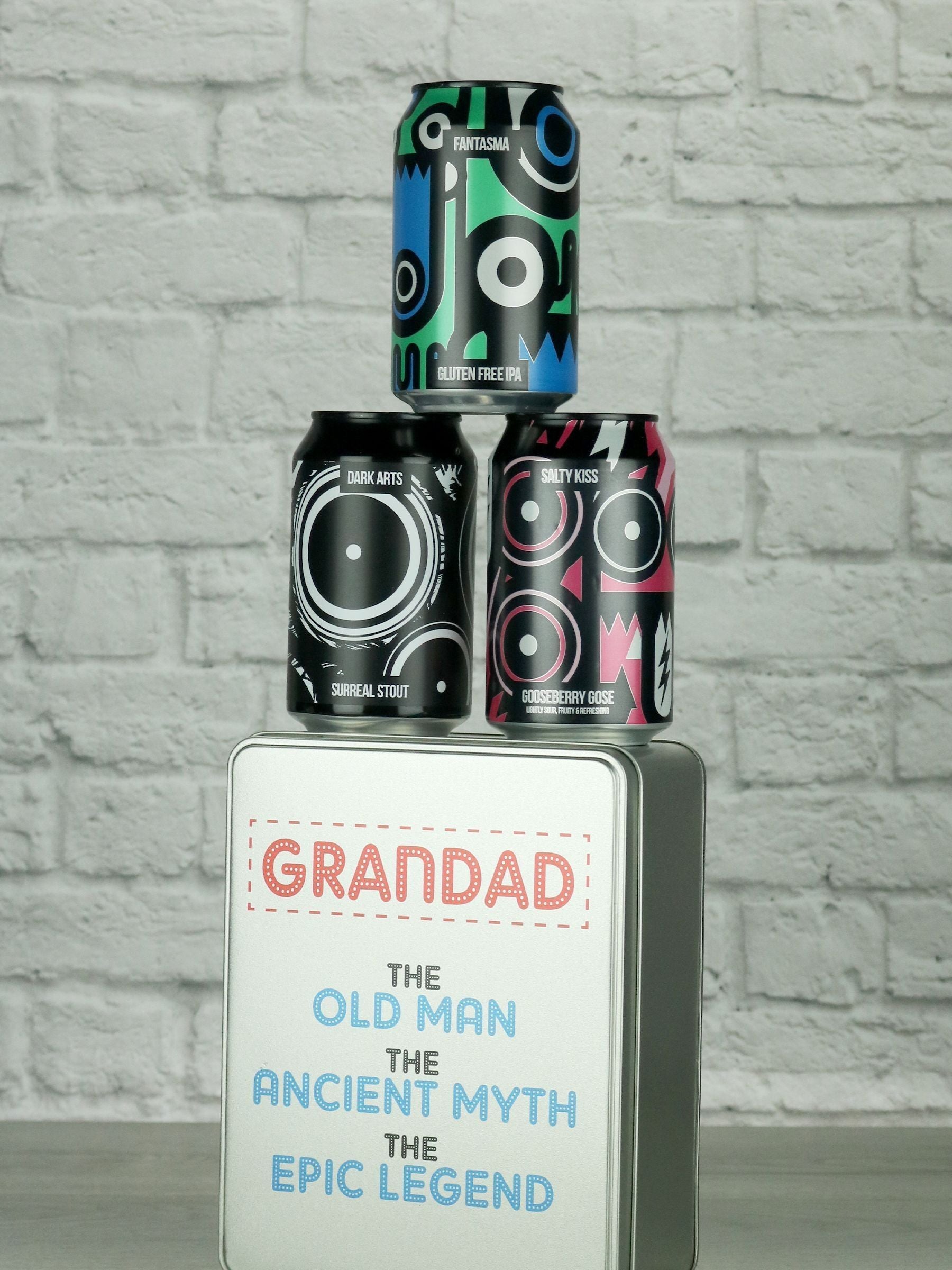 Coffret cadeau de bières artisanales pour les grands-pères légendaires. Contient trois bières artisanales de la brasserie Magic Rock. Présenté dans une boîte métallique à charnière décorée sur le thème de la paternité. Contenance : 3 bouteilles de 330 ml. Teneur maximale en alcool : 6,5 %. (Si une bière est indisponible, elle sera remplacée par une bière similaire).