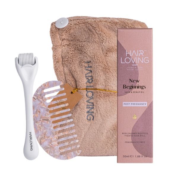 Kit de soin capillaire post-partum en 4 étapes ! Réparez vos cheveux abîmés naturellement. Les huiles de ricin et de jojoba leur redonnent de l'épaisseur. Contient de l'huile, une serviette pour les cheveux, un rouleau de massage et un peigne démêlant. Luttez contre la chute des cheveux et stimulez leur repousse.