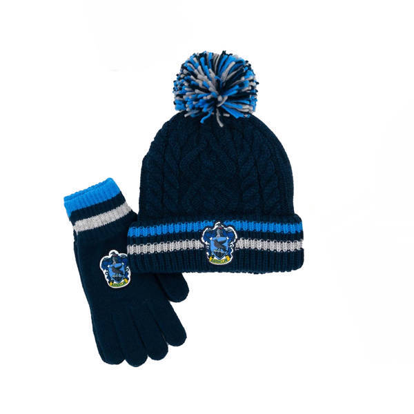 material acrylic fabric knitted cuff ribbed pom pom turned up cuff contents 2 gloves 1 hat 100 officially licensed design ravenclaw stripe detail