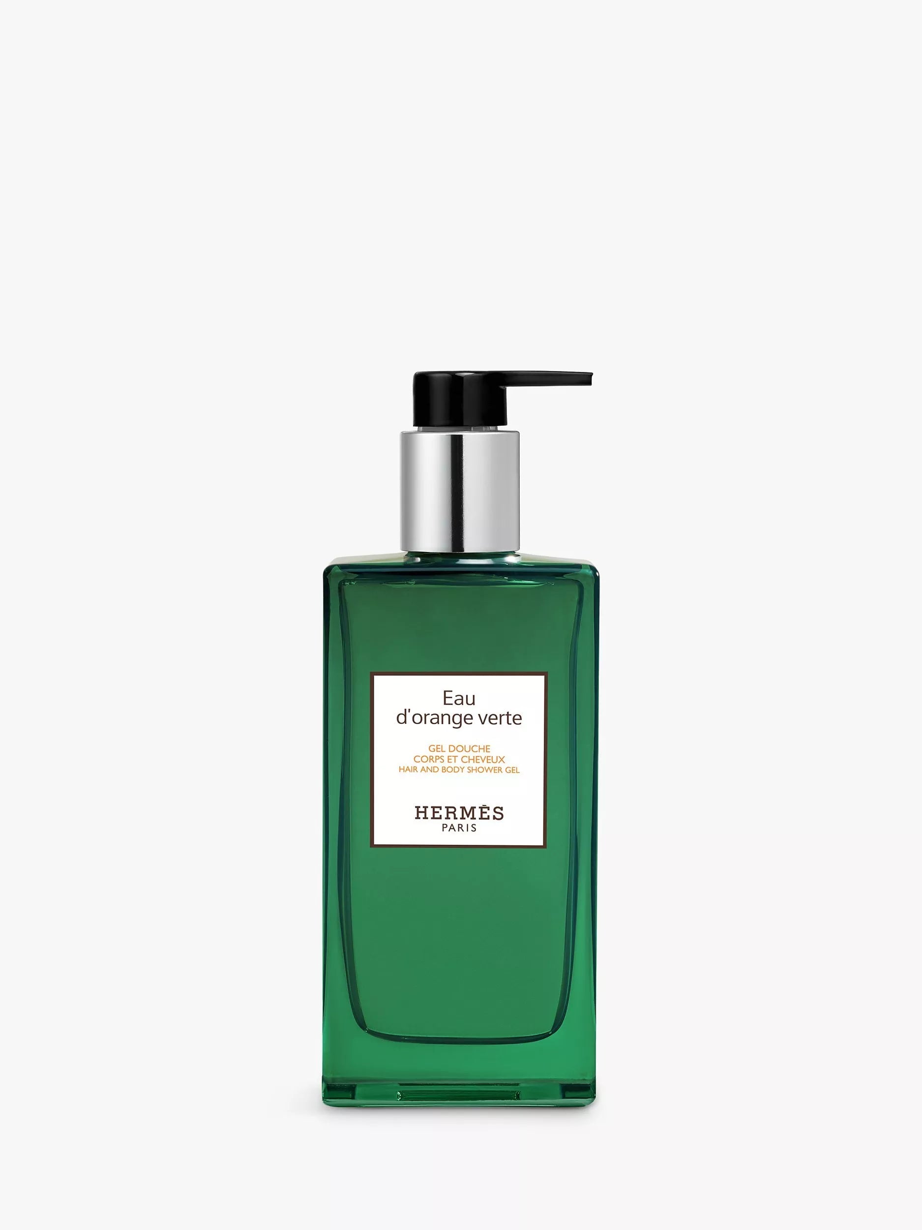 Les lignes droites du flacon sont ornées d'un vert profond, emblématique de l'Eau d'Orange Verte, et de deux détails signature : le H imprimé sur la base et le Clou de Selle gravé sur la pompe.