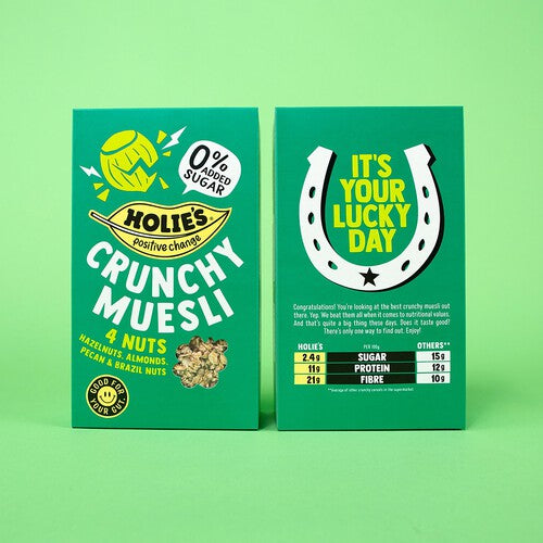 Holies Crunchy Muesli is a carefully crafted nut blend prepared with zero added sugar, resulting in a naturally sweet profile for your breakfast. This muesli delivers a satisfying texture combined with the richness of four different nuts. It is designed to be enjoyed as a tasty, wholesome option to start your day.