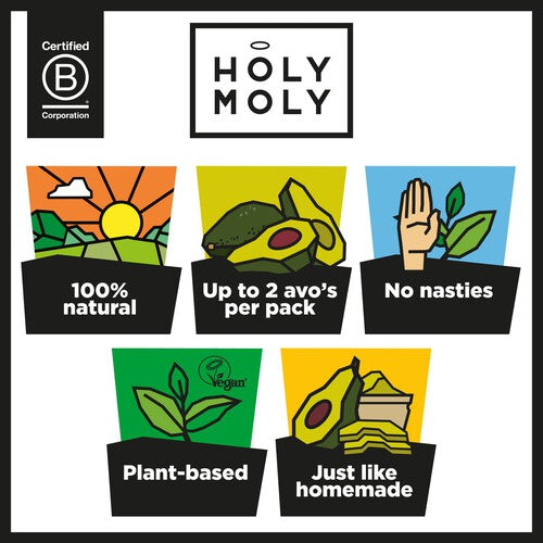 Holy Moly Original Guacamole offers a fresh taste that rivals homemade preparation. This Big Dipper portion uses only wholesome, natural components you would select for your own recipe. It contains no added dairy, gluten, sugar, or artificial preservatives, ensuring a clean profile.