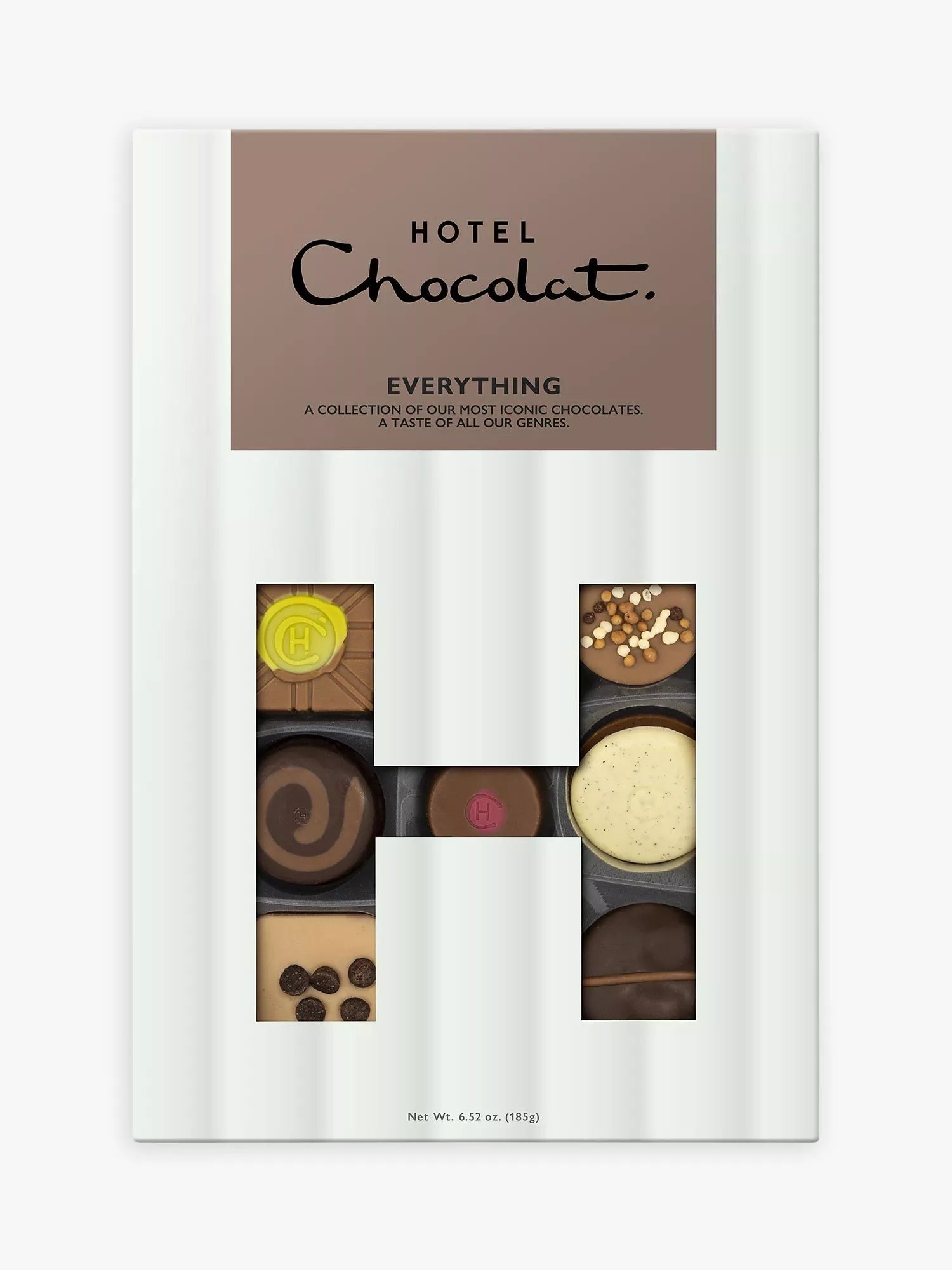Quatorze des meilleures recettes d'Hotel Chocolat : un coffret de grands classiques au chocolat au lait, noir et blanc. Savourez la Truffe au Champagne (élaborée avec du vrai champagne), la délicieuse Cerise Deluxe et la Mousse au Chocolat onctueuse, sans oublier l'Eton Mess crémeux, l'Isabelle Florentine croquante et le Smoothie à la Framboise acidulé. Un cadeau idéal, ou tout simplement un plaisir à s'offrir.