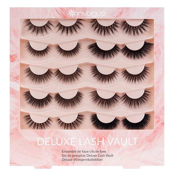 lightweight and sassy styles to accentuate and compliment a variety of looks from everyday glam to a night out look ultrafluffy designs make for the ultimate set for all your falsie needs 10 stunning pairs of false lashes 100 cruelty free and vegan friendly glue not included this set includes 10 pairs of invogue lashes