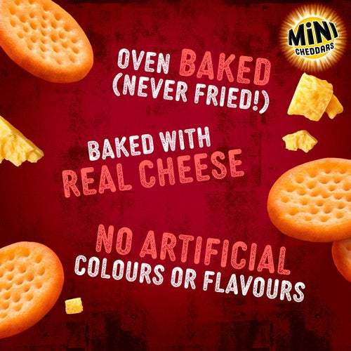 Jacobs Mini Cheddars deliver authentic flavour in a satisfyingly crunchy format. These popular baked snacks incorporate real cheese directly into the dough mixture for a richer taste profile in every bite.