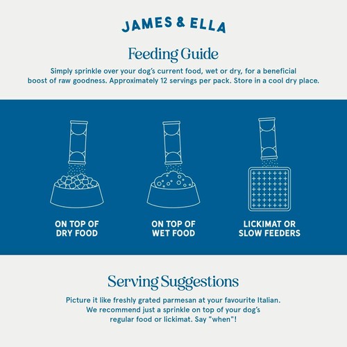 Simply sprinkle over your dog's current food, wet or dry, for a beneficial boost of raw goodness.