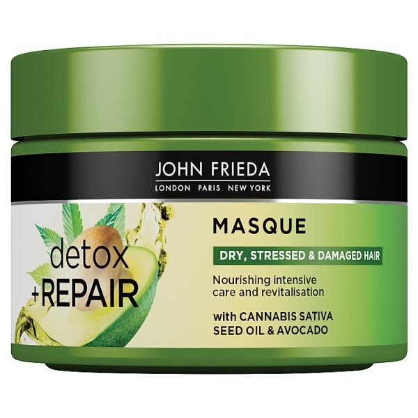 Vos cheveux sont exposés quotidiennement à de nombreuses agressions qui peuvent les rendre abîmés et ternes. L'accumulation de produits coiffants et les influences environnementales peuvent les fragiliser et réduire l'efficacité des soins. La gamme John Frieda Detox Repair libère vos cheveux des impuretés indésirables et crée la base idéale pour une réparation visible et une revitalisation immédiate. Transformez vos cheveux secs et abîmés en une chevelure saine, douce et brillante. La formule ultra-nourrissante du masque Detox Repair nourrit les cheveux pour une revitalisation instantanée. Les cheveux ternes et sans vie retrouvent leur énergie et sont visiblement réparés grâce au thé vert riche en antioxydants et à l'huile d'avocat nourrissante.