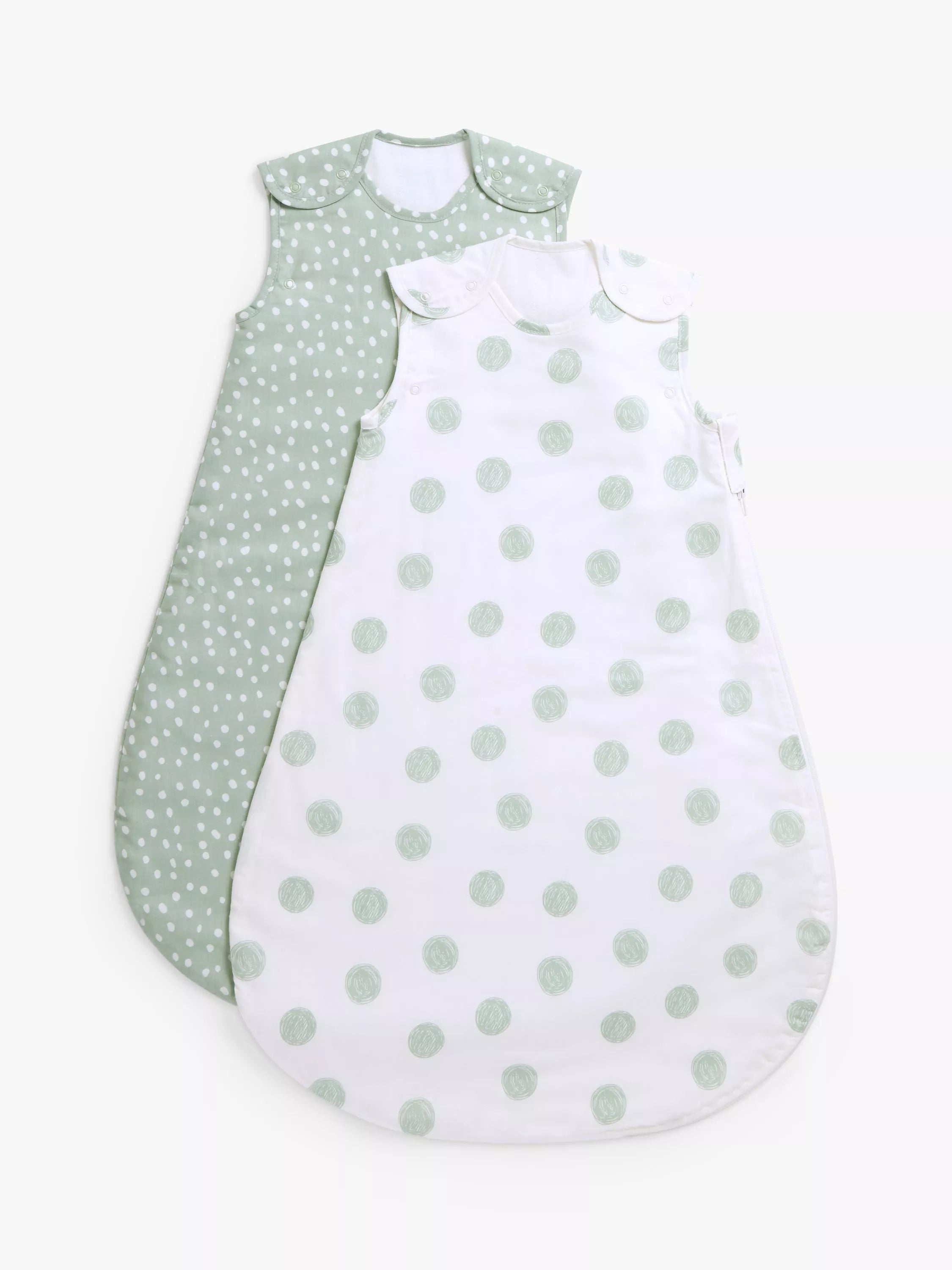 Vendus par lot pratique de deux, ces sacs de couchage sont conçus avec des imprimés à pois polyvalents qui s'adapteront à toutes les chambres d'enfant.